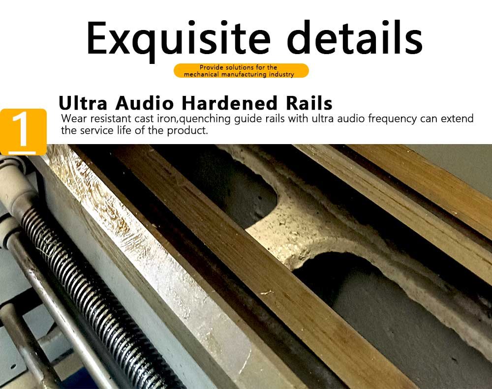 4. The lathe bed by integrally cast lathe bed structure, internal steel board layout is reasonable, has high rigidity, machine adopts the 250 casting iron, equipment with high frequency quenching, guide rail mill grinding process, stable machine tools with high precision, high rigidity, strong cutting.