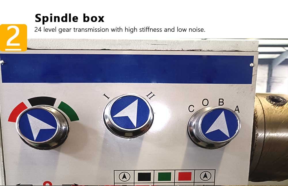 1. The machine tool power, strong rigidity, spindle speed range is wide, suitable for strong or high speed cutting.Of spindle brake and shift to the hydraulic control, sensitive and reliable braking available button without a stop conversion speed, the forced lubrication with pressure oil in the cabinet of the head of a bed, spindle speed range has several kinds, for user to choose from.