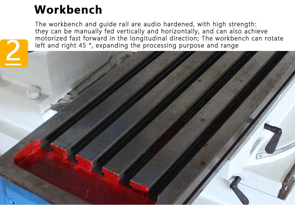 The machine is a massive rigid structure consisting of a movable milling head, guides, a movable desktop. The milling head can rotate around a vertical axis. Switching speeds of the horizontal spindle is carried out by rearranging the V-belt on the corresponding pulleys.