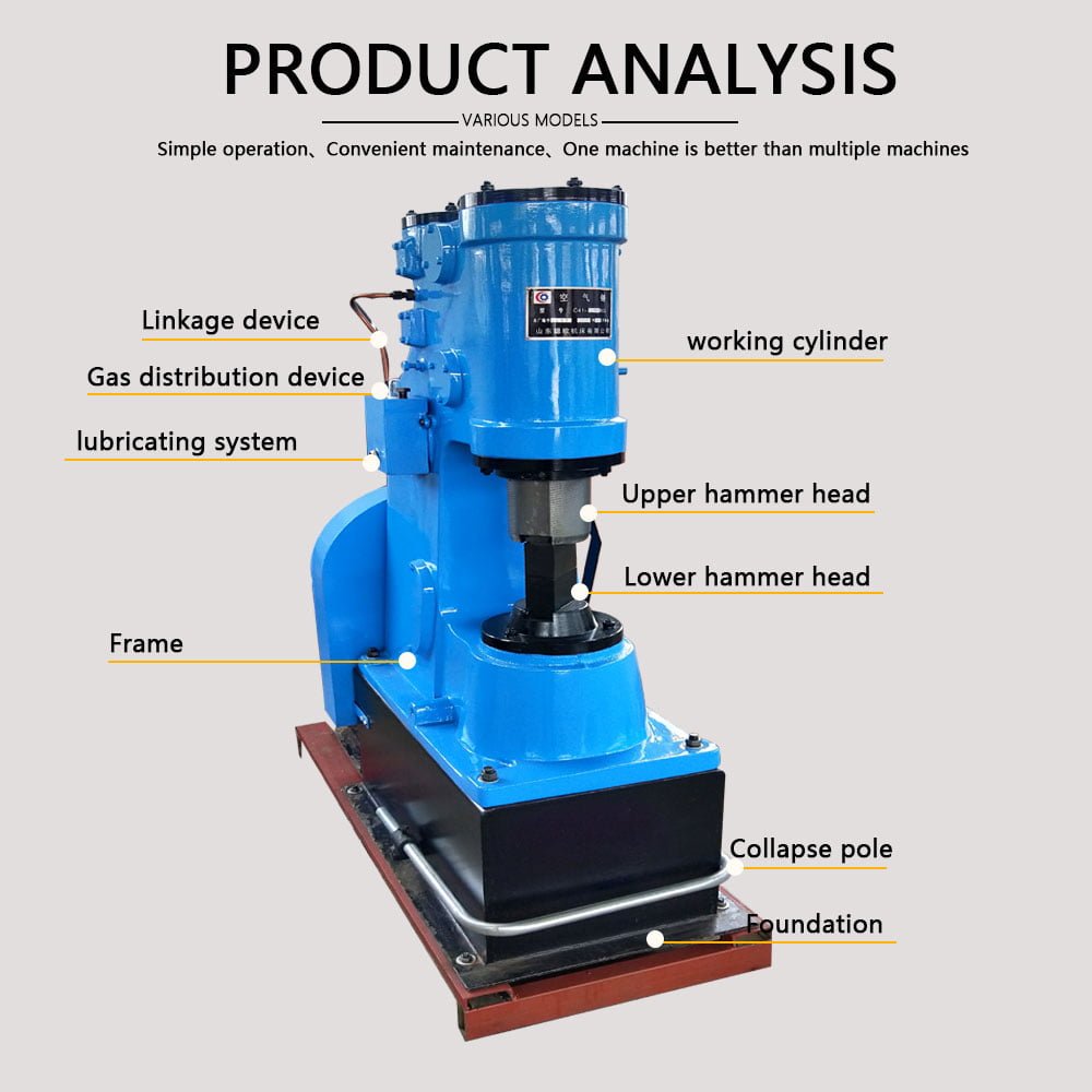 MK4127 air hammer is one kind of the free forge hammer, this forge hammer is widely used for grnral forging works, such as drawing-out, upsetting, chiseling, forge, welding, bending and twisting. It is also used for forge in open forgr-model.