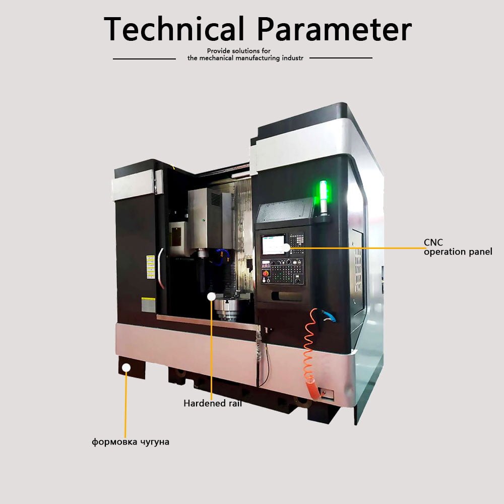 The V-series machine is a high-precision vertical Congou lathe. The cast bed reinforced with multiple internal stiffeners is made according to the principle of “housing in the housing”, it not only absorbs all vibrations and gives high rigidity to the machine, but also gives greater stability when heated. At the same time, a powerful spindle of its own design allows processing the heaviest alloys in all cutting modes. The big advantage of this machine model is its compact size.