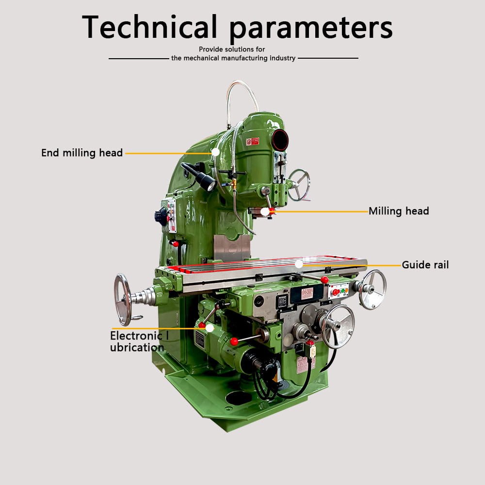 | Swivel angle of vertical milling head | ±45° |